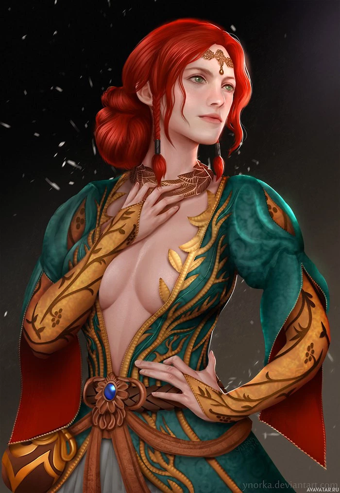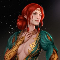 red hair and is wearing ornate armor with intricate designs, suggesting she might be a character from the "The Witcher" series. The design includes elements that seem inspired by historical or fantasy styles. If you have any