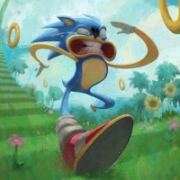 The image depicts a stylized and colorful illustration of the character Sonic the Hedgehog from