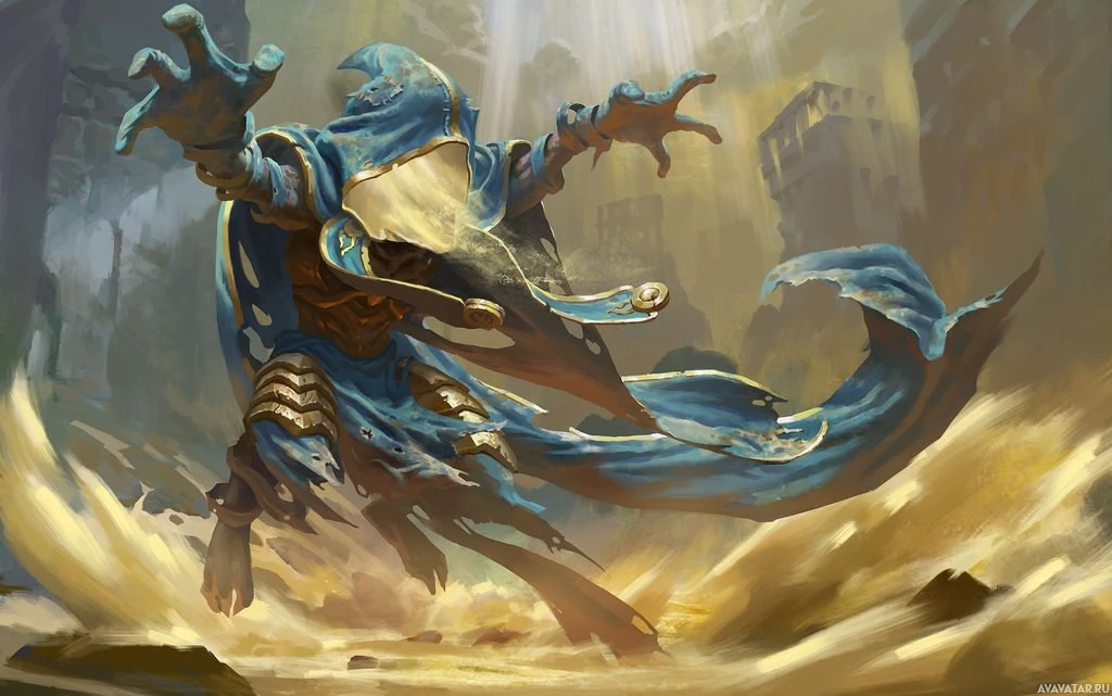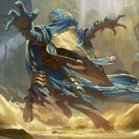 an elemental force, possibly representing the manipulation of magic or nature. The background hints at an ancient or mythical environment, which is consistent with fantasy themes where magical elements and characters are commonplace.
