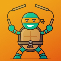 The image features an illustration of Michelangelo, one of the Teenage Mutant