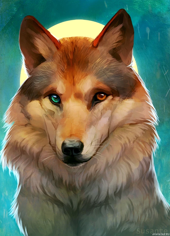 животные | Красивые авы с животным | Animals | Лунная сцена со светящимся волком