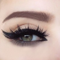 defined eyeliner and eyeshadow. The makeup appears to be professionally done, with detailed application around the eyes and eyebrows. The focus is on