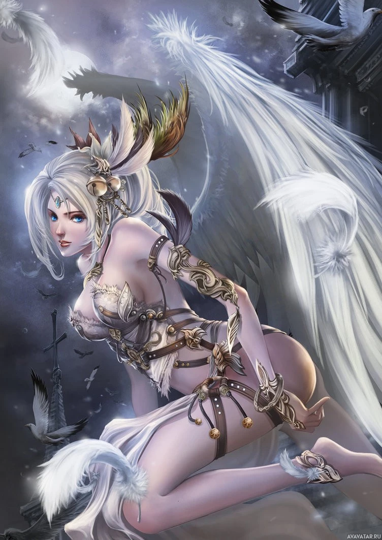 This image depicts a fantasy-style character that resembles an angel. The character has winged shoulders,