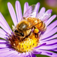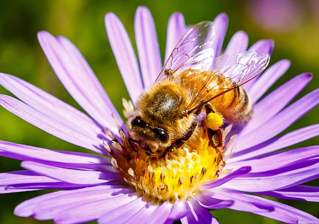 На картинке изображена пчела, которая является насекомым, питающимся цветком. И пчела, и цветок видны на картинке. Пчела, вероятно, привлекает цветок из-за его нектара или других источников пищи.