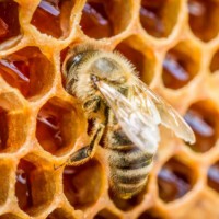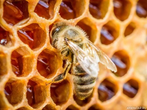 Изображение показывает пчелу внутри сотовой клетки. Он, по-видимому, находится в процессе сбора или хранения меда, что является типичным поведением для пчел, поскольку они отвечают за сбор нектара и пыльцы для поддержания диетических потребностей колонии.