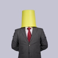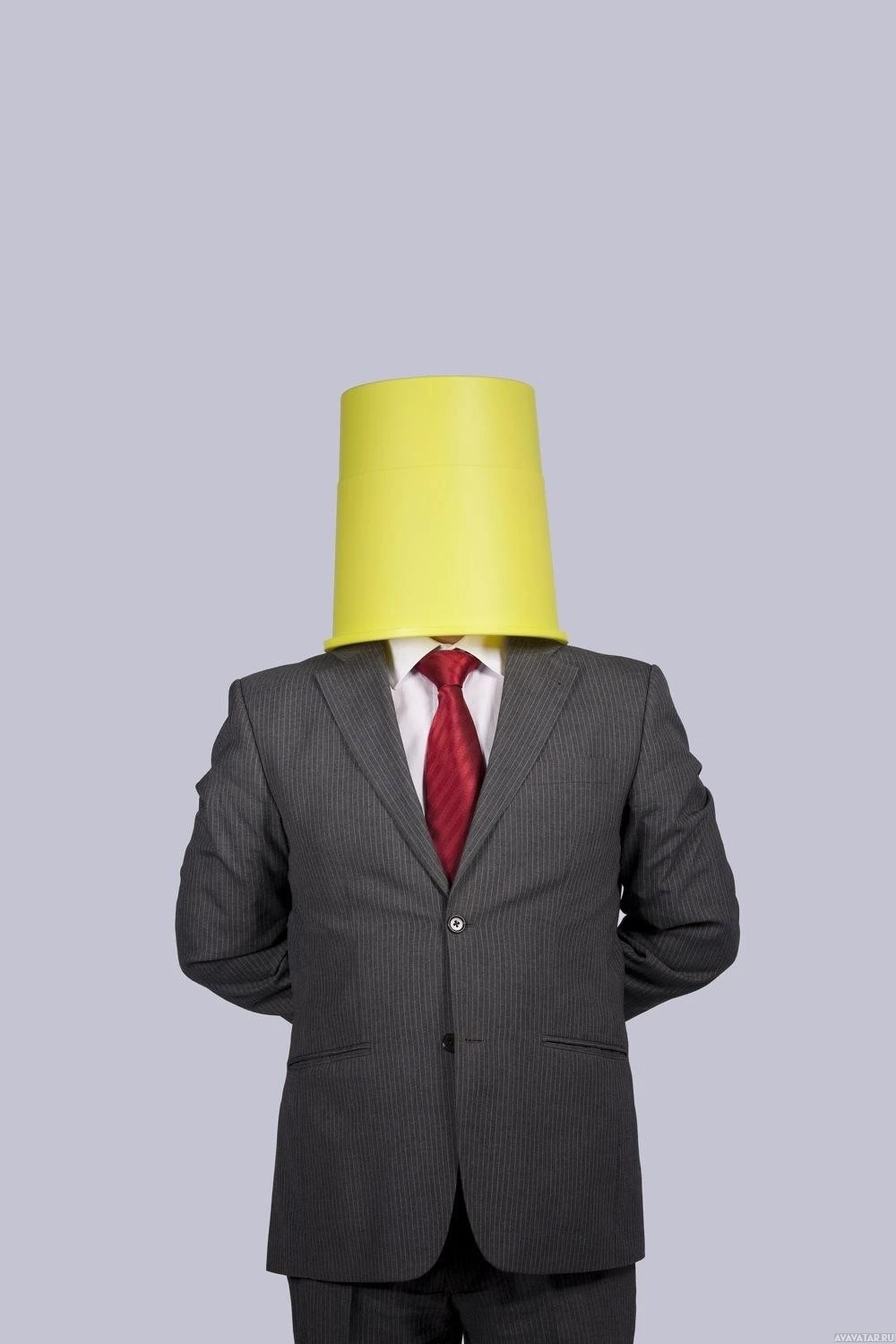 the usual head and face, there's an oversized yellow object covering the person's head. This creates a humorous and unconventional