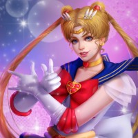 an illustrated character who appears to be Sailor Moon, a well-known anime and manga series created by Naoko Takeuchi. This version is styled in a modern and detailed art style, which differs from