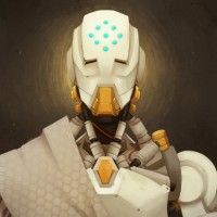 a humanoid form, including arms and legs, and is covered in what looks like armor or metal plating. A central feature of the character's design is a glowing blue circular pattern on its chest, which could represent