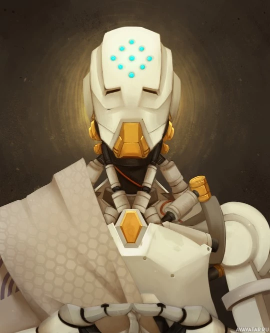 The image depicts a character that appears to be a robot with human-like features. It has