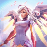 The image depicts an animated character known as Mercy from