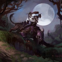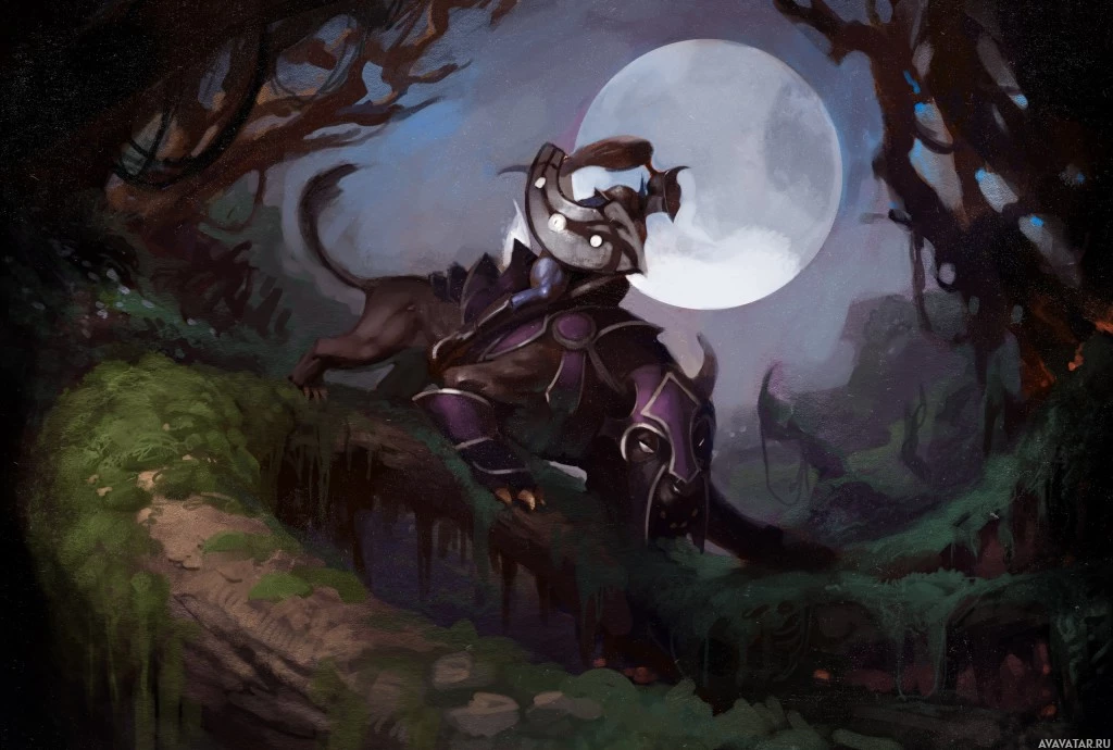 the video game "Dota 2" named Luna. She is shown in a forest setting with