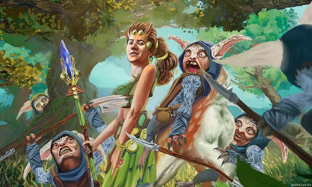 several characters that are part of the game's fantasy and mythical universe. In the center, there is a character named Enchantress who is known in-game for her