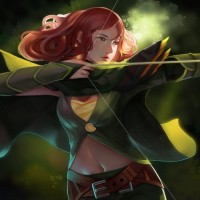 a female character, presumably from the video game "Dota 2," known as Windranger. She is shown in