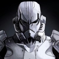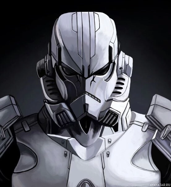 The image features a character in full armor that resembles the design of a stormtrooper from