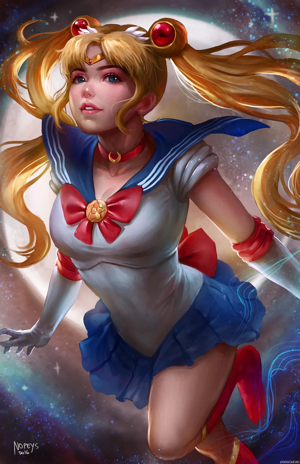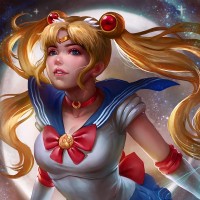 sailor suit, complete with the iconic crescent-shaped hair clip that signifies her role as Sailor Moon. The artwork showcases a high level of detail and is likely created by an artist who specializes in
