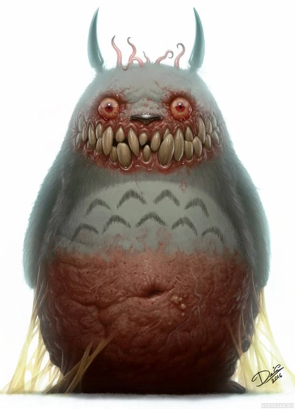The image shows an illustration of a character that resembles a monster or creature from the "Studio Ghibli"