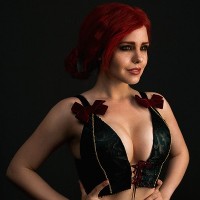 The image features a woman dressed in lingerie that resembles the outfit of Triss Merigold, a character from