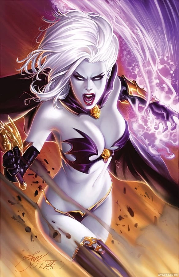 The image depicts a character that appears to be from the comic book series "X-Men," specifically a female with