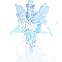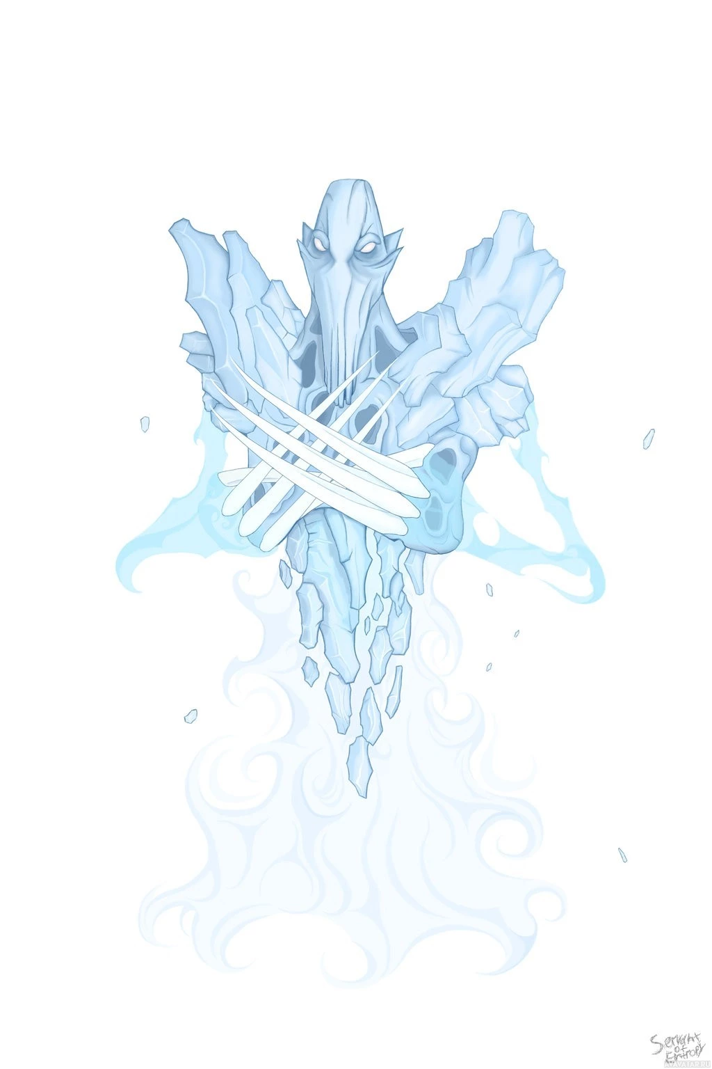 ice particles, further emphasizing the creature's icy nature. The artwork is highly stylized and seems to draw inspiration from