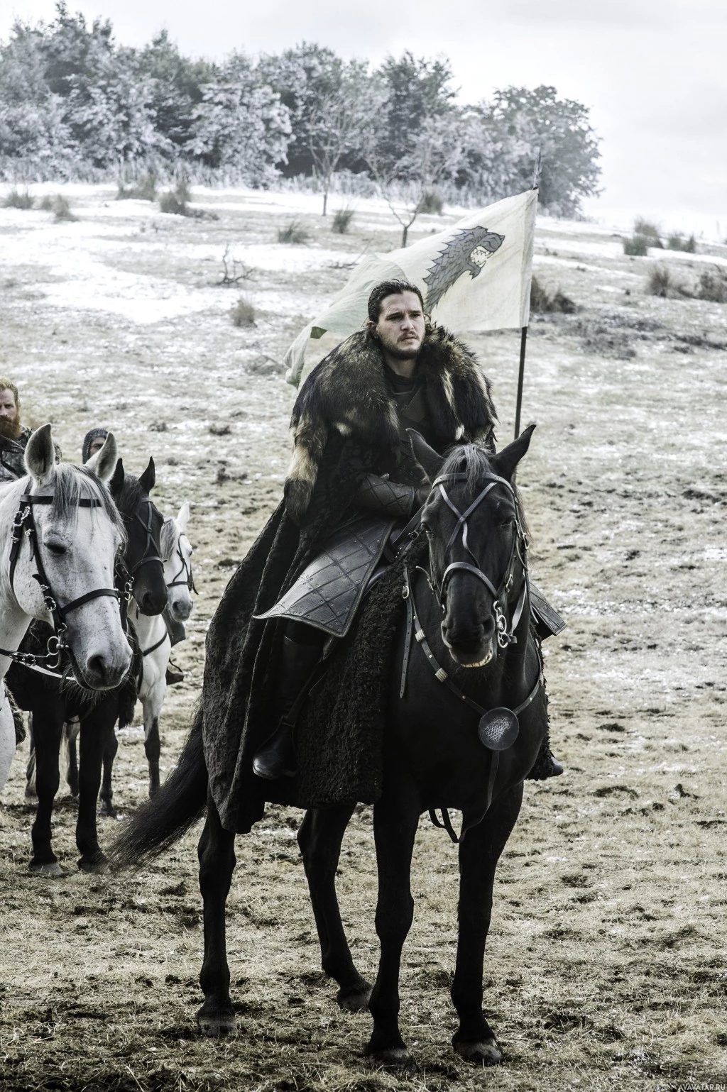 a specific purpose. This scene captures a moment that showcases Jon Snow's character as he rides alongside others, potentially indicating his role as a leader or protector within the context of the story.
