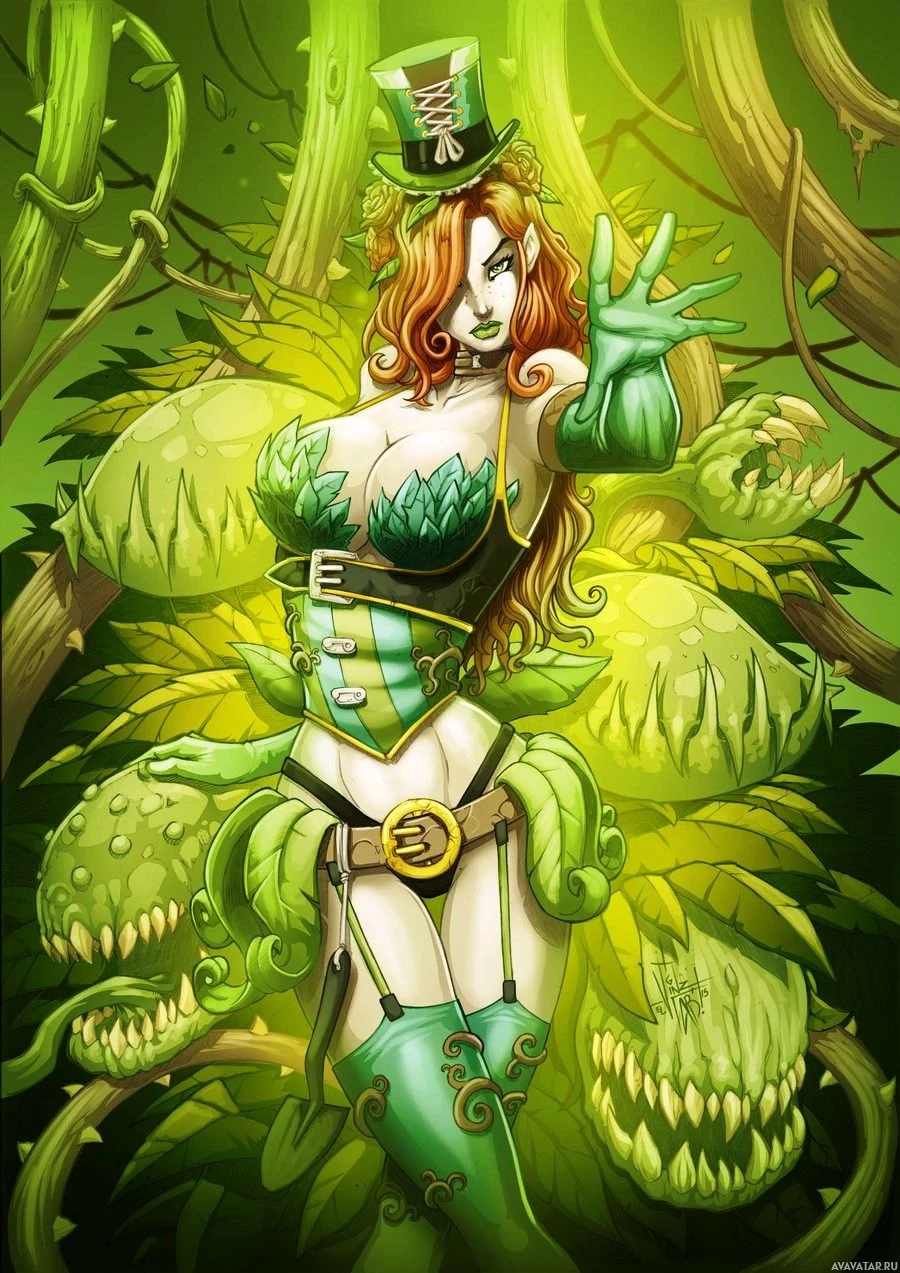 Poison Ivy, a fictional comic book villain created by writer John Byrne and artist George Pérez. The character in the image is depicted with vibrant