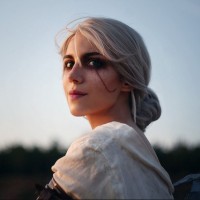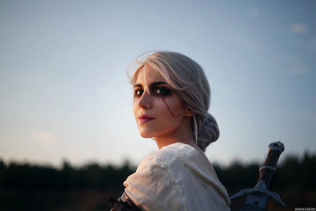 The image shows a person dressed as Ciri, a character from