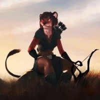 an anthropomorphic character that resembles a Khajiit from the game "The Elder Scrolls". This character is depicted in a stylized,