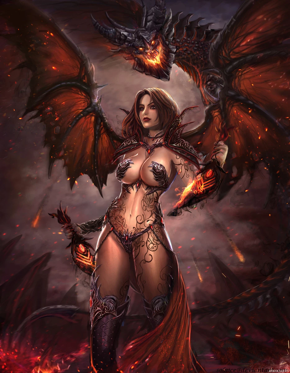 a female figure that appears to be a succubus, which are mythological creatures often depicted as seductive demons. She has