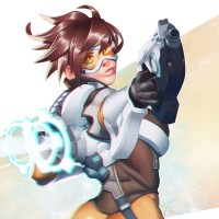 the video game "Overwatch." This character is known as Tracer, and she is one of the many playable