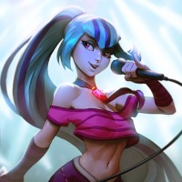 an animated character, a girl with blue and green hair. She is wearing