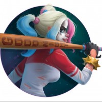Harley Quinn, a fictional supervillain appearing in American comic books published by DC Comics. She is shown in profile with