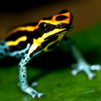 The image shows a yellow and black frog, which is commonly known as a poison