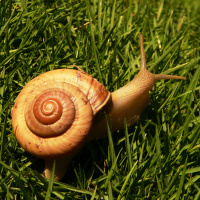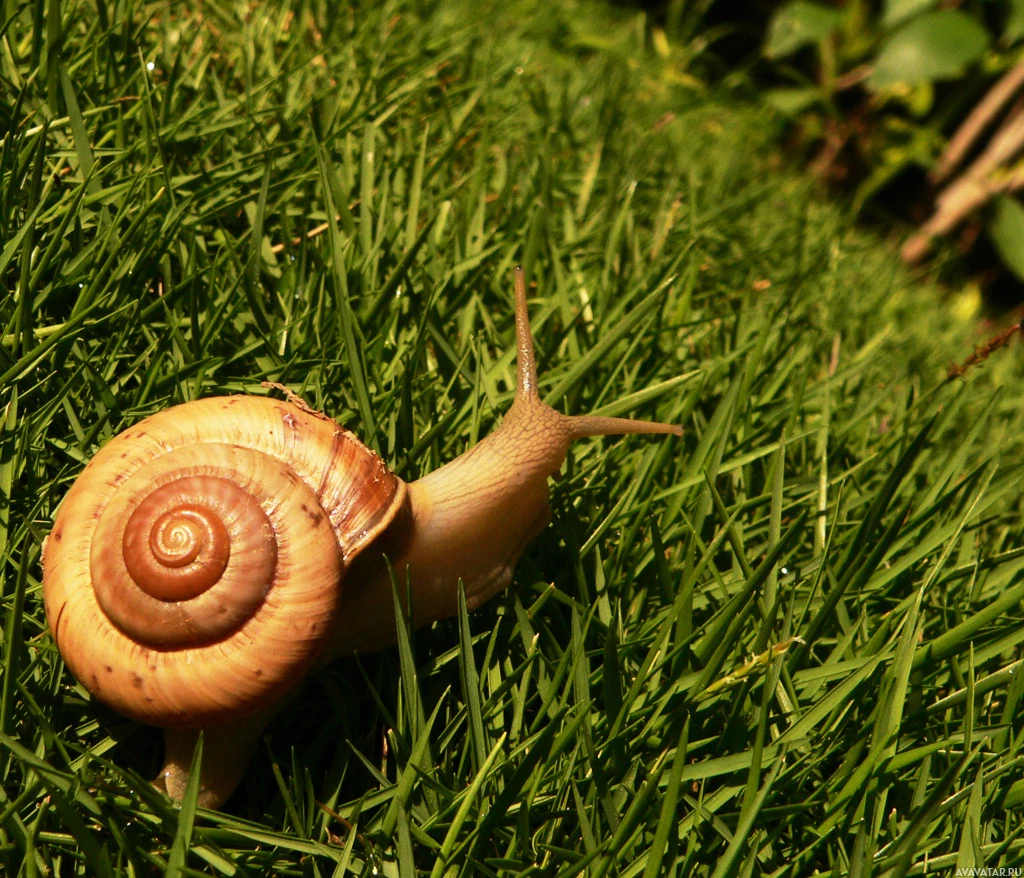 На картине изображена улитка на какой-то траве. По-видимому, это изображение крупным планом, фокусирующееся на раковине улитки, что характерно для этого типа наземного моллюска.