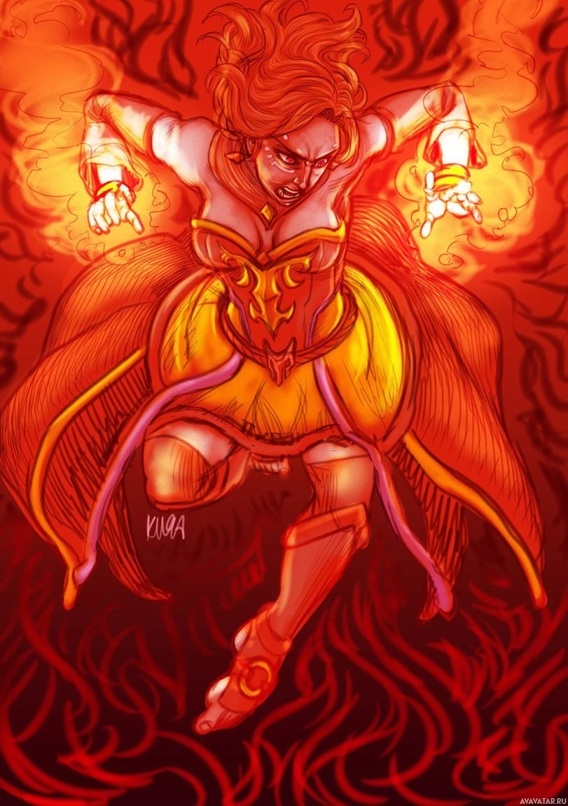 The image features an illustration of a character from the game Dota 2, specifically Lina. She is depicted in