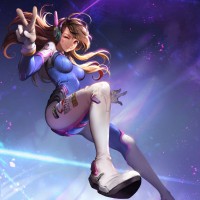 an animated character in the style of Overwatch, a popular multiplayer online first-person shooter game. The character shown is D.Va, who is known for her