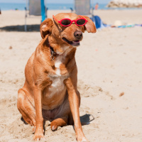 leisure time. The overall mood of the image is playful and whimsical due to the dog's sunglasses.