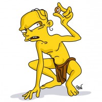 a crouching pose, with his hands outstretched and fingers splayed. There is no Middle-earth or Gollum element present in this picture; it appears to be a humorous representation of the character without any