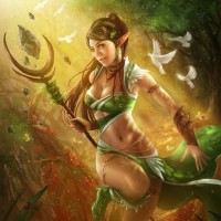 The image depicts a fantasy-themed character. She appears to be an elf, given