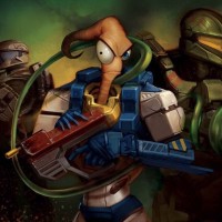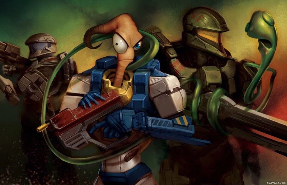 video game series. On the left side, there is an anthropomorphic earthworm character wearing a suit of armor, similar to