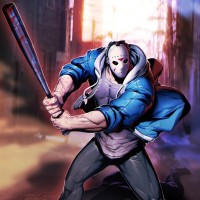 a dynamic pose, swinging a baseball bat at an opponent who is lying on the ground. The artwork style suggests it could be from