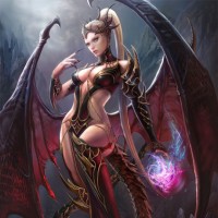 a fantasy character who appears to be a succubus, which is typically depicted as an enchanting figure with the ability to seduce through her beauty. This particular representation showcases