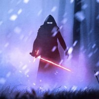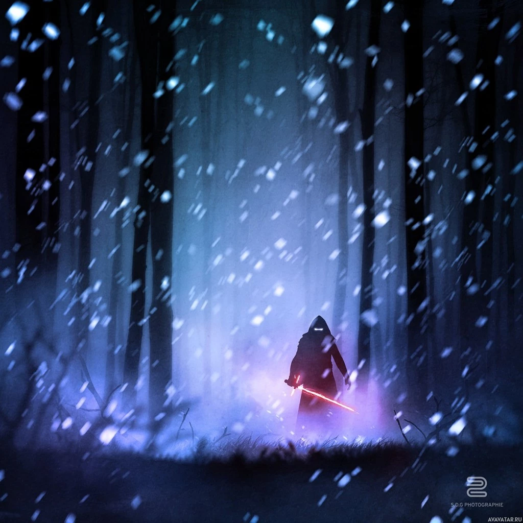 a snowy forest at night, with a foggy or smoky atmosphere and blue lights emanating from the ground, suggesting a mystical or otherworldly setting. The image has a distinctive dark and moody tone that is often associated with the Star