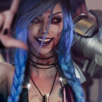 the video game "League of Legends," specifically from one of the game's regions where the character is known as Jinx. The character is shown with