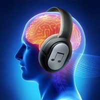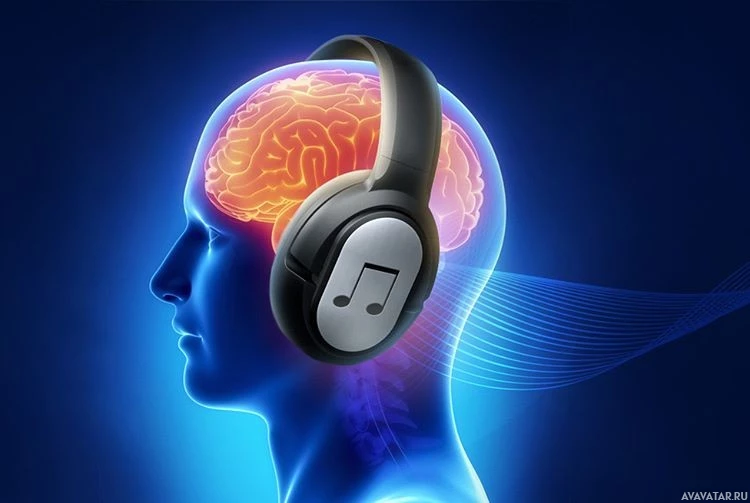 a human head with a pair of headphones placed on top. Inside the head, there is an overlay that appears to represent