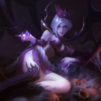 white hair and a serious expression on her face, holding what looks like a bow and arrow in one hand and a staff or wand in the other. The setting suggests she might be in a dark
