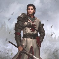 a fantasy setting, likely inspired by the "Game of Thrones" series given the resemblance to the attire and style associated with that franchise. The character is male and wears armor with a crest or emblem on it, possibly indicating a role of nobility or importance within this