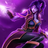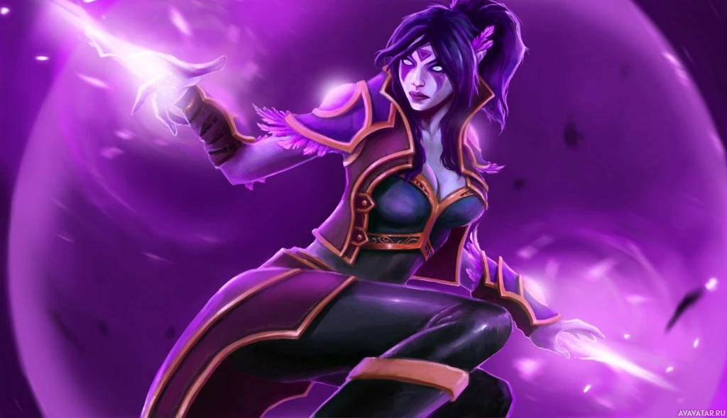 the video game Dota 2, known as Templar Assassin. She is depicted with a purple hue and is wielding a weapon that emits
