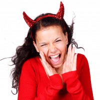 facial expression with wide eyes and her mouth open as if she's screaming or shouting, which might be interpreted as a playful or dramatic gesture rather than actual distress. There are no other