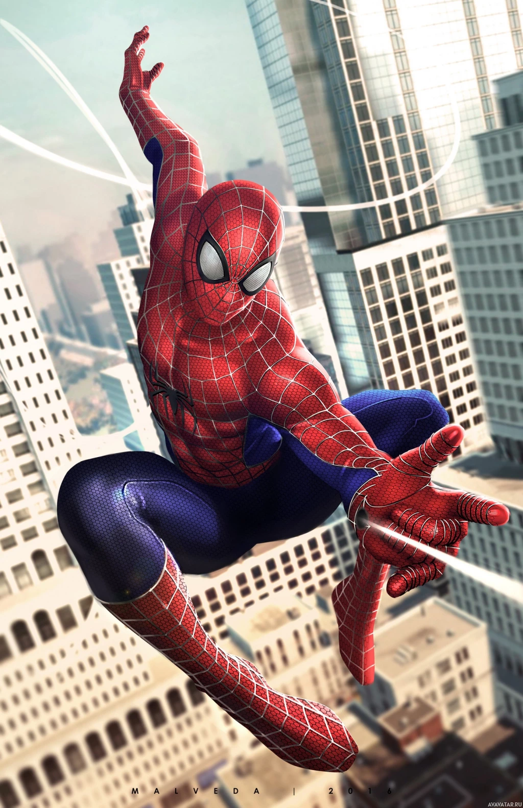 The image shows Spider-Man, a fictional superhero from