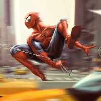 comic books published by Marvel Comics. He is depicted in the middle of swinging on his web through